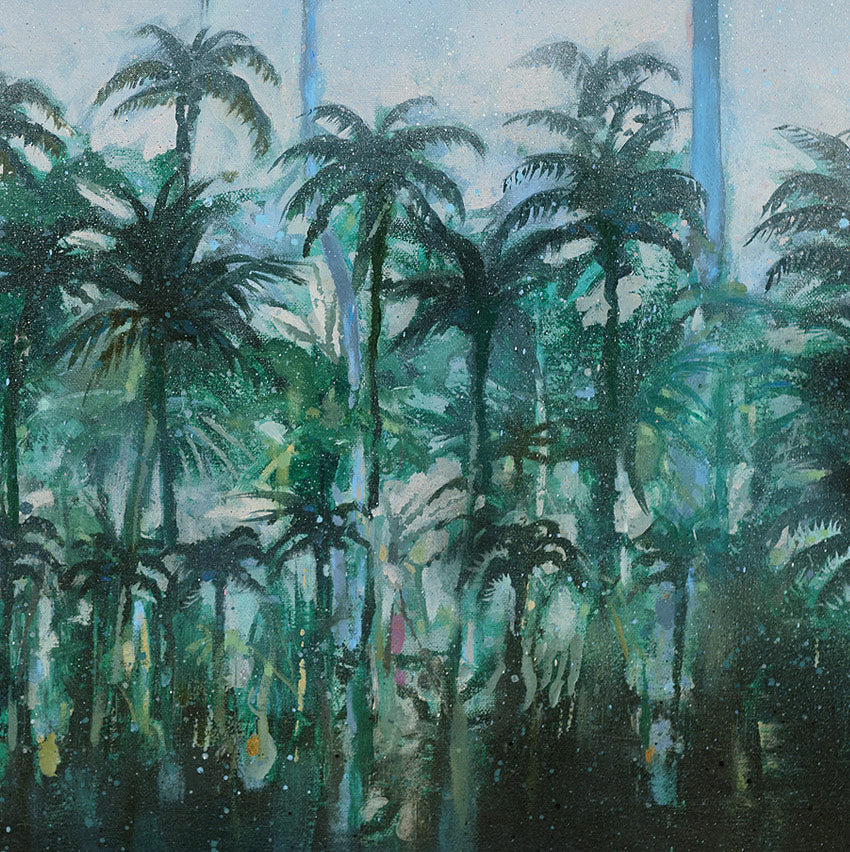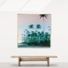 Overall framed dimensions: 103 x 103cms, 3.2cms in depth. The frame is an elegant antique gold 'floating' frame with a 5mm space between the canvas and frame edge. Canvas dimensions: 100cms x 100cms, 1.8cms in depth. Stretched 380g canvas. Signed and dated on the reverse.